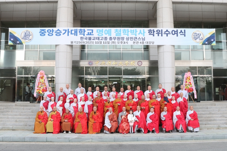 11월 11일 승가교육 진흥과 불교의례 전통 계승에 힘써 온 공로에 중앙승가대(총장 월우 스님)는 본관 4층 대강당에서 ‘태고종 총무원장 상진 스님 명예 철학박사 학위 수여식’을 개최했다.